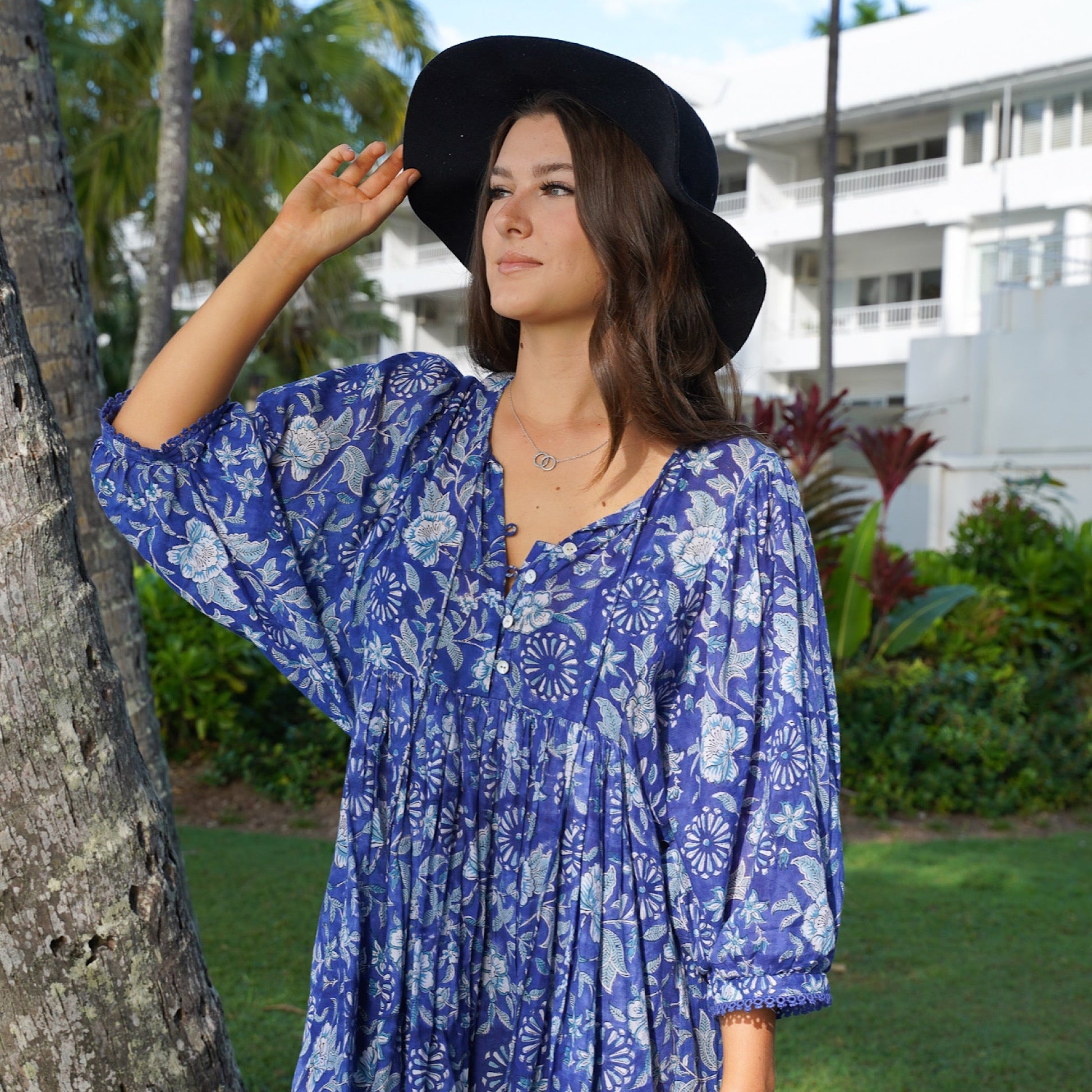 Our Hawa dress is made for dreamers!! This beauty looks gorgeous on all body types. As well as that, it’s probably the most comfortable dress you will ever wear! Made with super soft cotton fabric that is hand-block printed in India, the print and style is designed in Australia by owner Shweta Bonneau.
